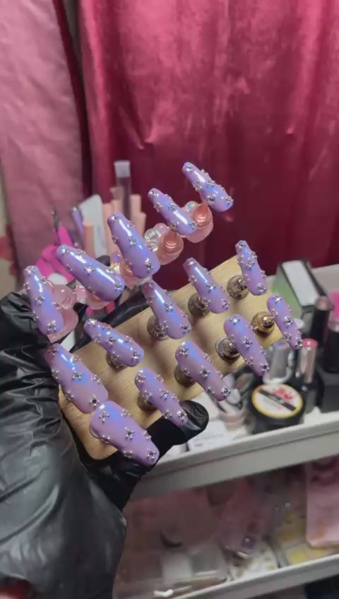 Each nail set is tailored to fit the size of your nail bed. 12-16 nails are included in every set to accommodate varying shapes. Avoid measuring with tape, just submit a hand picture for our experts to determine the best size. Extra nails are provided for adjustments or replacements.